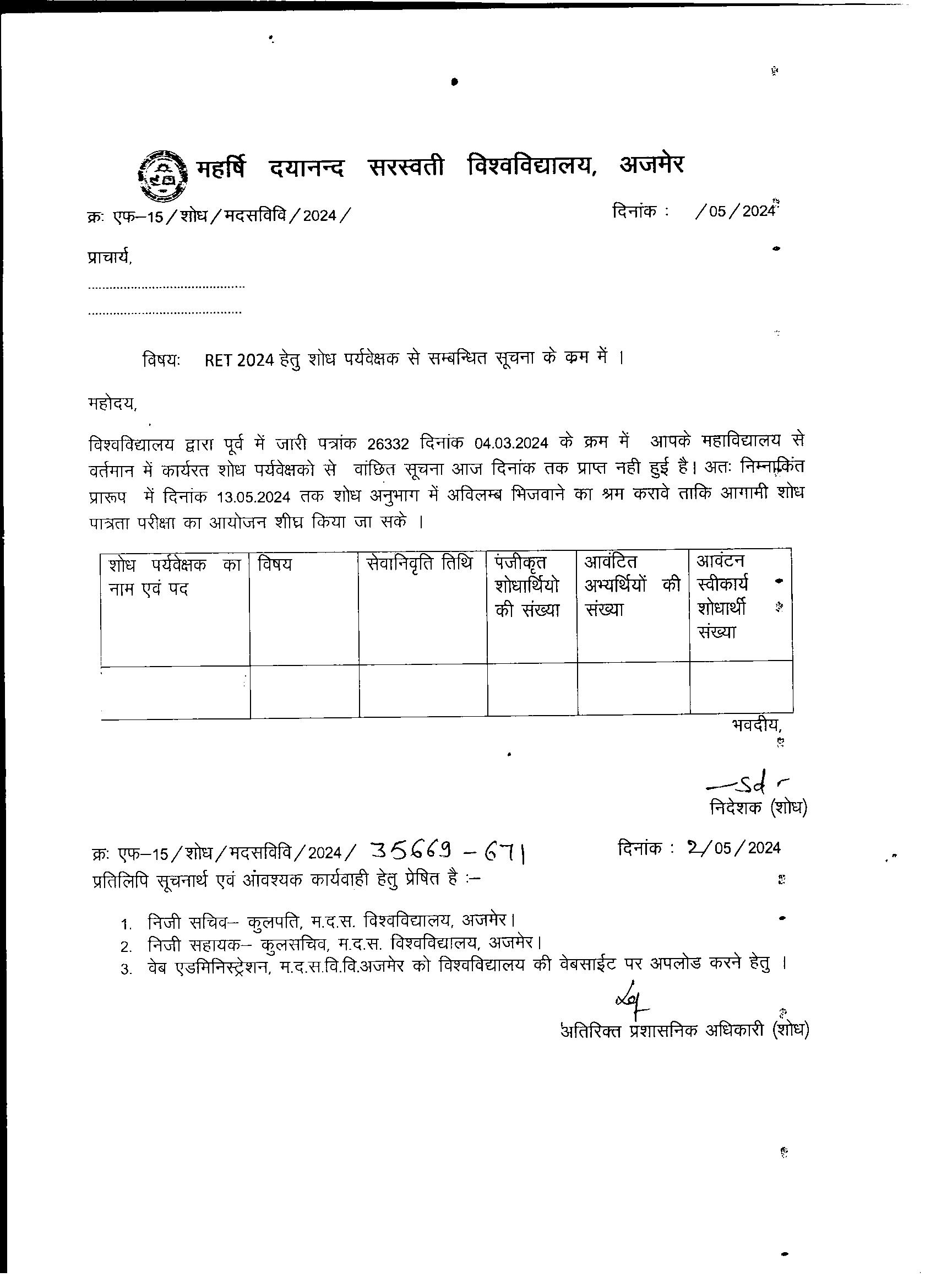 | 1. | Regarding RRC meeting (education) on 03-08-24 | 31 July, 2024 | Download Attachment |