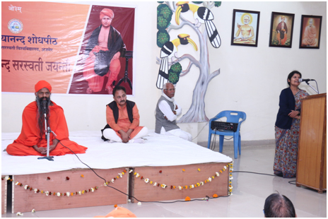 कार्यक्रम में स्वामी विश्वांग जी, गुरूकुल आचार्य एवं अन्य सन्यासीगण, वानप्रस्थीगण, ब्रह्मचारीगण, ऋषि उद्यान, अजमेर पधारे। स्वामी विश्वांग ने महर्षि दयानन्द के जीवन चरित्र व उनके द्वारा समाज सुधार, नारी जाति का उद्धार, शिक्षा में स्वामी जी का योगदान व भारतीय सभ्यता संस्कृति का सही व वैज्ञानिक दृष्टिकोण के बारे में विस्तृत चर्चा की। उन्होंने बताया कि स्वामी दयानन्द ने समाज में प्रचलित बाह्य आडम्बरों का विरोध किया व समाज को सही दिशा दी। आज भी स्वामी जी के सिद्धांत व विचार प्रासंगिक हैं। सबसे ज्यादा जरूरत समाज को सही दिशा देने की है। सबसे ज्यादा जरूरत समाज में नैतिकता की है जिसके लिए स्वामी जी ने भरपूर प्रयास किए। आजादी में स्वामी जी के योगदान की चर्चा करते हुए उन्होंने कहा कि आजादी में भी स्वामी जी का अहम् योगदान रहा तथा ‘स्वराज‘ शब्द सबसे पहले उन्होंने ही दिया।